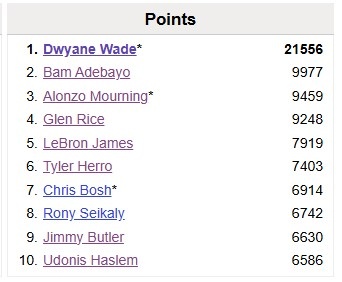 他也成为热火队史韦德之后,第二个总得分破万的球员。